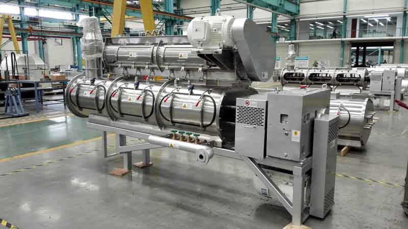 狗糧加工設(shè)備JNK200-T5M:1。JNK200-T5M型狗糧加工設(shè)備安裝方便、出廠已經(jīng)試機(jī),狗糧機(jī)切刀采用直角切刀技術(shù),調(diào)試簡單;2。狗糧設(shè)備的主軸和切刀小軸均可隨時(shí)注入耐高溫潤滑脂,延長狗糧機(jī)的軸承使用壽命;3。JNK200-T5M狗糧設(shè)備每小時(shí)生產(chǎn)狗糧顆粒200公斤。